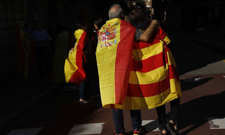 Εκατοντάδες χιλιάδες Καταλανοί οπαδοί της ενότητας της Ισπανίας διαδηλώνουν σήμερα Κυριακή στους δρόμους της Βαρκελώνης, δύο ημέρες μετά την κήρυξη της ανεξαρτησίας από το καταλανικό κοινοβούλιο, η οποία σηματοδότησε μια πρωτοφανή ρήξη σε 40 χρόνια δημοκρατίας.