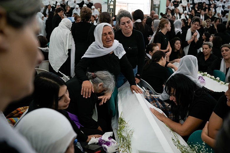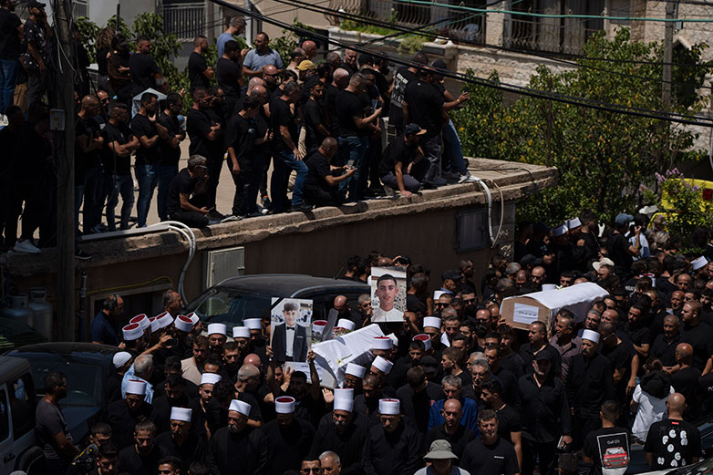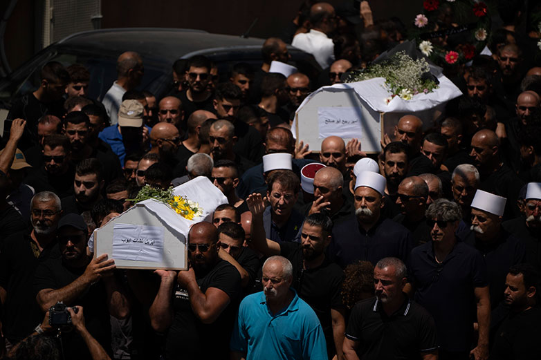 Χιλιάδες άνθρωποι από την κοινότητα των Δρούζων έχουν συγκεντρωθεί για τις κηδείες. Κλαίγοντας άνδρες, ντυμένοι με παραδοσιακά ρούχα, μετέφεραν τα σκεπασμένα με λευκά σκεπάσματα φέρετρα στους δρόμους του Majdal Shams, όπου συνέβη το χτύπημα.