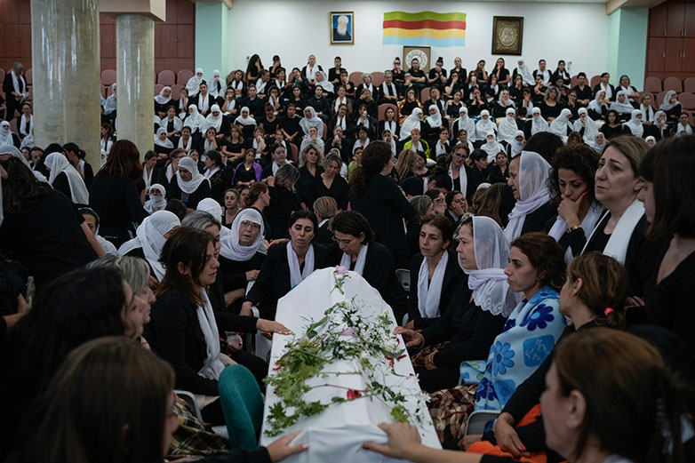 Λίγο νωρίτερα, αρκετές γυναίκες ντυμένες με μαύρα ράσα αμπάγια έκλαιγαν καθώς κατέθεταν λουλούδια στα φέρετρα.