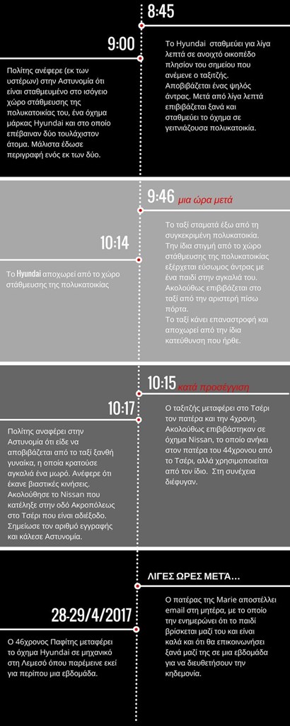Ο «REPORTER» με βάση όσα καταγράφονται σε κάμερες ασφαλείας, τόσο από την περιοχή της απαγωγής όσο και από τη διαδρομή της διαφυγής, παρουσιάζει το χρονικό, όπως διαμορφώνεται μέχρι στιγμής.