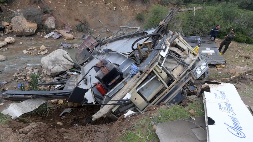 Προερχόμενο από την Τύνιδα και με προορισμό την Άιν Ντράχαμ, το λεωφορείο, που είχε ναυλώσει ένα τοπικό τουριστικό γραφείο, εξετράπη από την πορεία του στην περιοχή Άιν Σνούσι, ανέφερε το υπουργείο Εσωτερικών.