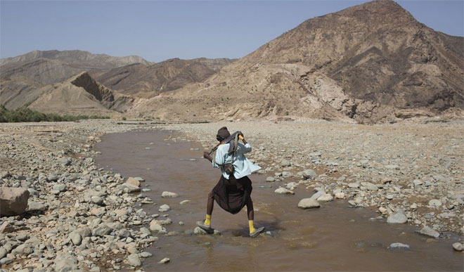 Ένας ένοπλος άνδρας στην περιφέρεια Αφάρ, διασχίζει ένα ποτάμι στο Βύθισμα του Ντανακίλ, Βόρεια Αιθιοπία, 20 Απριλίου, 2013.