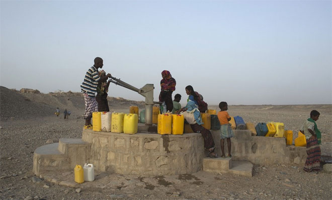Κάτοικοι της Hamad-Ile αντλούν νερό από ένα πηγάδι στο Βύθισμα του Ντανακίλ, Βόρεια Αιθιοπία, 21 Απριλίου 2013.