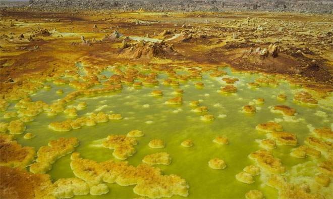 Σχηματισμοί θείου και ανόργανων αλάτων στο Dallol, στο Βύθισμα του Ντανακίλ, Βόρεια Αιθιοπία 22 Απριλίου, 2013.