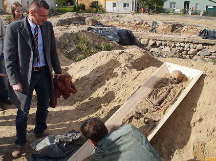 Ο Slawomir Gorka πρότεινε την εκσκαφή σε μια αγορά, στη μικρή πόλη Kamien Pomorski στη βορειοδυτική Πολωνία, καθώς υπήρχαν πολλά ασυνήθιστα δείγματα στον τάφο. Και πράγματι, όπως διαπιστώθηκε, τα δόντια του νεκρού είχαν αφαιρεθεί, μια πέτρα είχε τοποθετηθεί στο στόμα του και στο ένα πόδι είχαν καρφώσει μια σφήνα -πιθανόν για να μην επιτρέψουν στον νεκρό να βγει από τον τάφο…