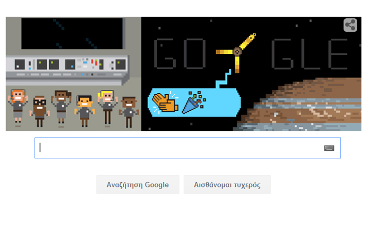 Η επιτυχία της αποστολής δεν πέρασε… απαρατήρητη από τη μεγαλύτερη μηχανή αναζήτησης. Για τον λόγο αυτόν, η Google αφιερώνει το σημερινό της doodle στην ιστορική αποστολή της NASA στον Δία: