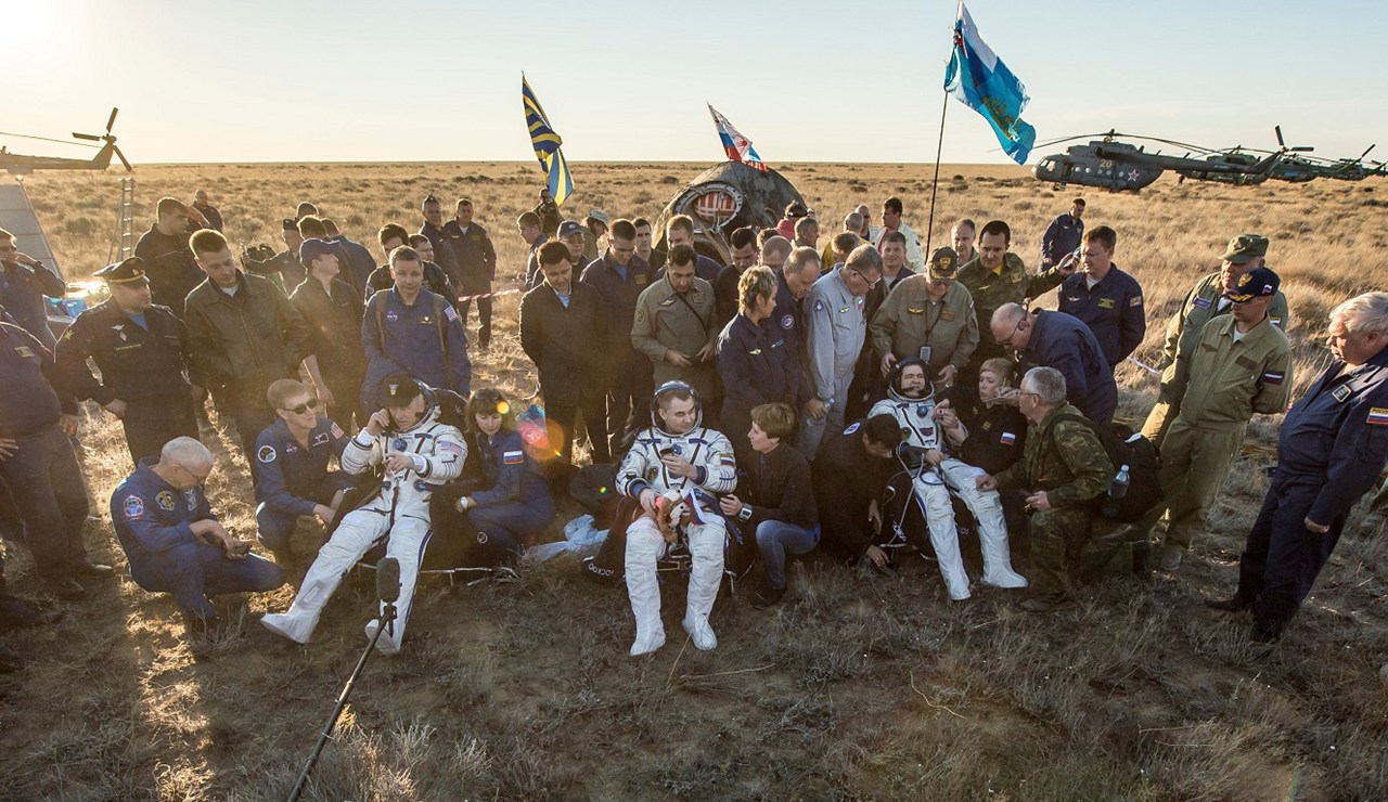 Οι τρεις αστροναύτες, οι Ρώσοι Oleg Skripochka και Alexey Ovchinin και ο Αμερικανός Jeff Williams, βρίσκονταν στον Διεθνή Διαστημικό Σταθμό (ISS) από τις 19 Μαρτίου, συμπληρώνοντας 172 ημέρες στο διάστημα.