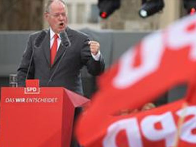 Το Σοσιαλδημοκρατικό κόμμα ζητά δεσμευτικές απαντήσεις από την Μέρκελ. Το τρίτο χρηματοδοτικό πακέτο και το πιθανό κούρεμα του χρέους έχουν προκαλέσει σοβαρές διαφωνίες στους κόλπους του κυβερνητικού συνασπισμού, στελέχη του οποίου δεν κρατούν ενιαία στάση. Η καγκελάριος Μέρκελ προσπαθεί να βγάλει το θέμα από την ημερήσια διάταξη του προεκλογικού αγώνα που επέβαλε με σχετικές δηλώσεις ο υπουργός Οικονομικών Σόιμπλε χωρίς επιτυχία. Η συζήτηση έχει φουντώσει και η μείζων αντιπολίτευση προσπαθεί να κεφαλαιοποίησει τα όποια οφέλη μπορεί να αποκομίσει για να ανακάμψει κάπως δημοσκοπικά. Ο υποψήφιος πρόεδρος του Σοσιαλδημοκρατικού κόμματος Πεερ Στάινμπρουκ εξαγγέλλει σε συνέντευξη στη σημερινή Südwest Presse ότι πριν από τις εκλογές θα πιέσει την Μέρκελ να πάρει σαφή θέση για το ενδεχόμενο ενός τρίτου πακέτου για την Ελλάδα. Θα το κάνει και στο μοναδικό ντιμπέιτ του προεκλογικού αγώνα την Κυριακή, αλλά και στην τελευταία ολομέλεια της Βουλής λίγο πριν ολοκληρώσει τις εργασίες της σε αυτήν την κοινοβουλευτική περίοδο.
