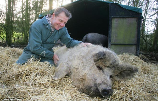 Ο Malcolm Gough και η γυναίκα του Lesley αγόρασαν ένα Mangalitsa πριν από τέσσερα χρόνια και από τότε δηλώνουν ερωτευμένοι μαζί του.