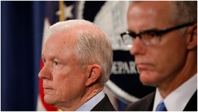 O Αμερικανός υπουργός Δικαιοσύνης Jeff Sessions, ανακοίνωσε ότι απέλυσε τον υποδιευθυντή του FBI Andrew McCabe, «με άμεση εφαρμογή της απόφασης».