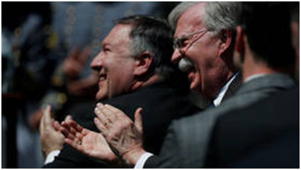 Πετώντας στη Φινλανδία, ο υπουργός Εξωτερικών των ΗΠΑ Μάικ Πομπέο επανέλαβε την προειδοποίηση του Μπόλτον: «Έχουμε δει εκρηκτικές ενέργειες από τους Ιρανούς και … θα κρατήσουμε τους Ιρανούς υπεύθυνοι για επιθέσεις εναντίον των αμερικανικών συμφερόντων … Εάν οι ενέργειες αυτές γίνουν , εάν από κάποιοντρίτο πληρεξούσιο, αν πρόκειται για ομάδα πολιτοφυλάκων Σιιτών ή Χούθι (της Υεμένης) ή Χεζμπολά, θα καταστήσουμε την ιρανική ηγεσία άμεσα υπεύθυνη γι ‘αυτό».
