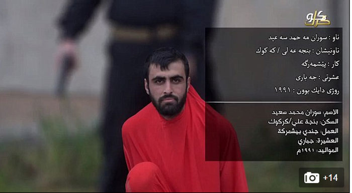 Οι περισσότεροι λένε ότι κατάγονται από το Κιρκούκ. Οι αιχμάλωτοι εμφανίζονται να συμβουλεύουν τους υπόλοιπους Πεσμεργκά να σταματήσουν τον πόλεμο κατά του Ισλαμικού Χαλιφάτου. Από την πλευρά τους οι τζιχαντιστές τούς συμβουλεύουν να εγκαταλείψουν τις δουλειές τους.