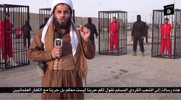Νέο βίντεο του Ισλαμικού Χαλιφάτου εμφανίζει έναν άνδρα με μικρόφωνο να ενημερώνει ότι 21 Κούρδοι στρατιώτες Πεσμεργκά αιχμαλωτίστηκαν. Οι ίδιοι φέρονται αργότερα να εκτελέστηκαν δι’ αποκεφαλισμούΣε βίντεο που έχουν διαρρεύσει εμφανίζονται τουλάχιστον 21 άνδρες να οδηγούνται στον θάνατο μέσα σε ατομικά κλουβιά, φορώντας πορτοκαλί στολές.