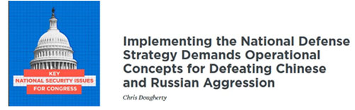 Για το σκοπό αυτό, το Κογκρέσο πρέπει να ενθαρρύνει την ανάπτυξη νέων επιχειρησιακών εννοιών για την καταπολέμηση της Κίνας στην Ανατολική Ασία και τη Ρωσία στην Ανατολική Ευρώπη. Το Κογκρέσο θα πρέπει να ζητήσει από πολλούς οργανισμούς – κυβερνητικούς και μη κυβερνητικούς – να διεξάγουν ανεξάρτητες μελέτες για την ανάπτυξη επιχειρησιακών εννοιών και να παράσχουν υποστηρικτικές αναλύσεις τόσο στο DoD όσο και στο Κογκρέσοο.