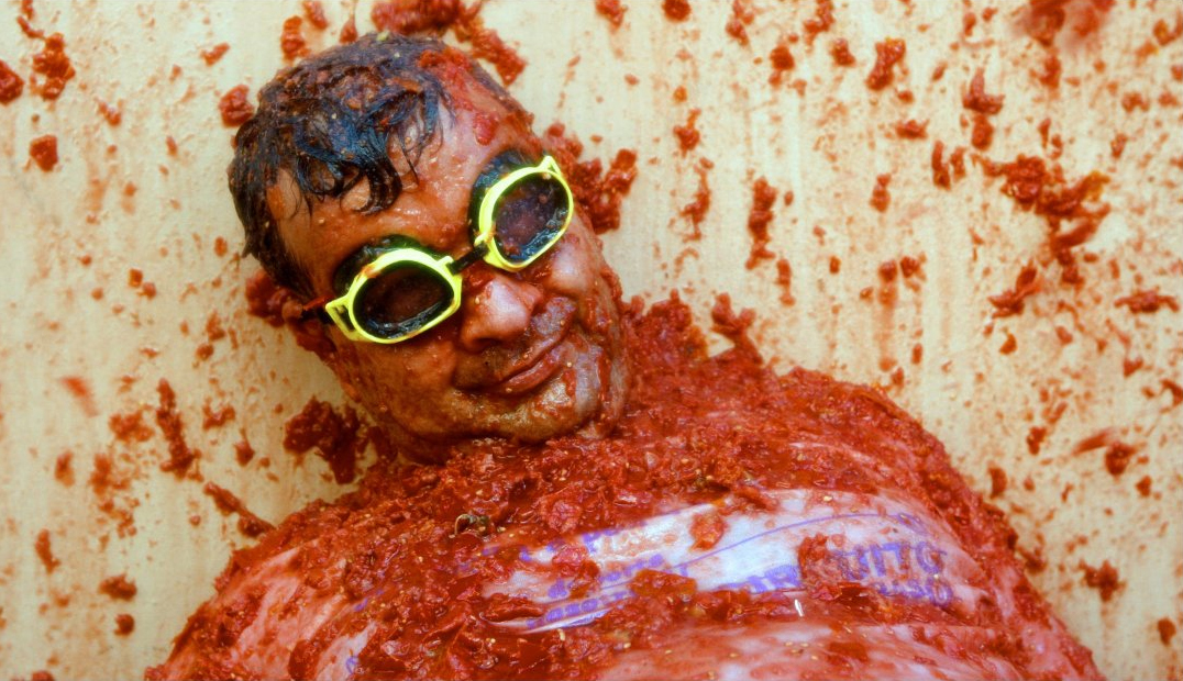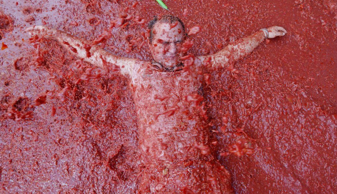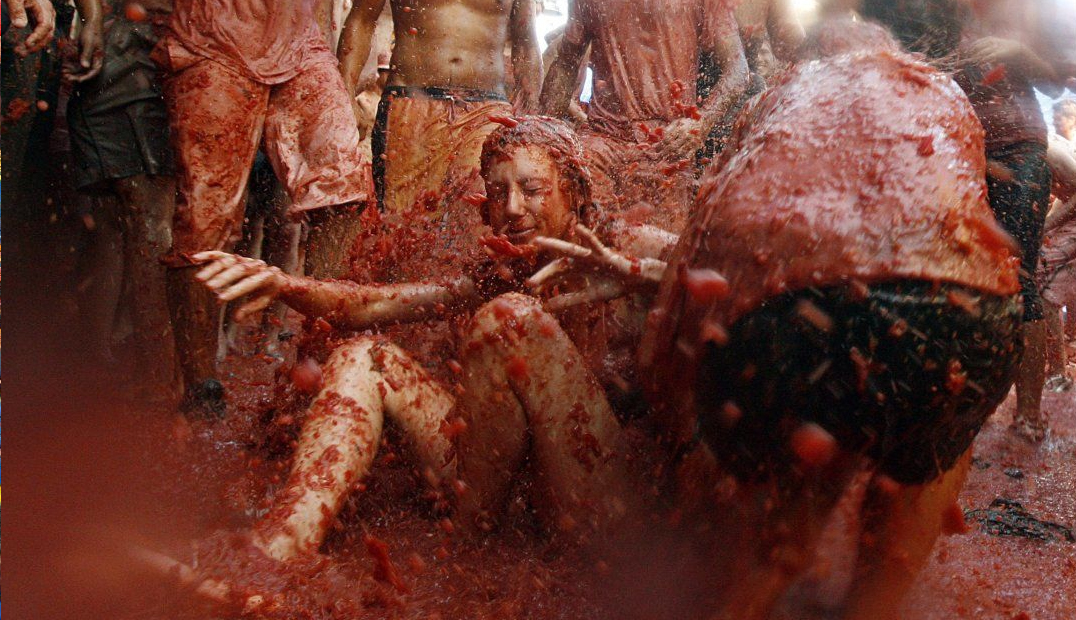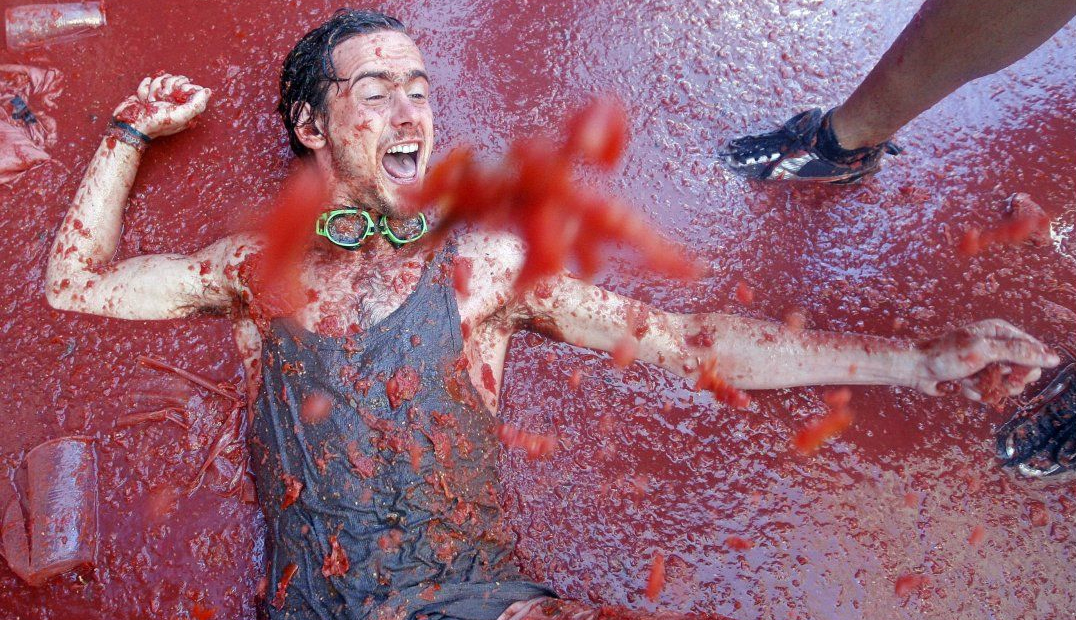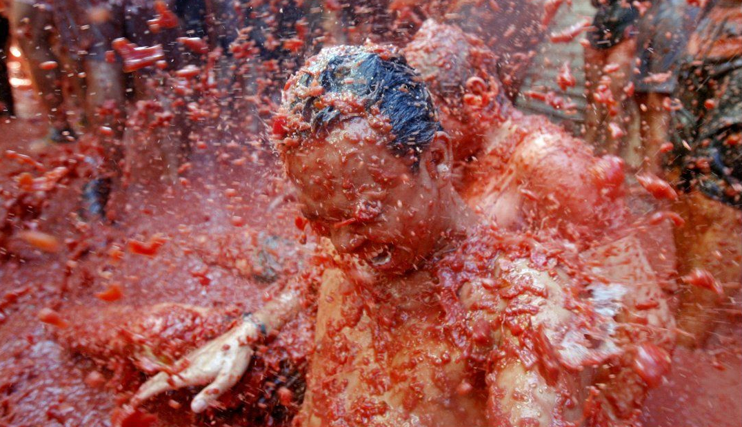 Πρόκειται για μια ωριαία μάχη μεταξύ των διοργανωτών και των επισκεπτών με πυρομαχικά… 100 τόνους πολύ ώριμης ντομάτας!