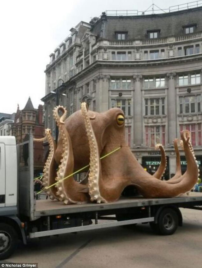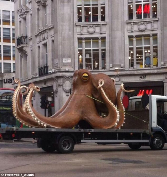 Κυκλοφοριακό χάος προκάλεσε ένα τεράστιο ομοίωμα χταποδιού-τεραστίων διαστάσεων- στην καρδιά του Λονδίνου, στο Oxford Circus. Ο λόγος; Το χταπόδι που κοσμούσε την περιοχή, πάνω στη συμβολή με την οδό Regent, έσπασε και έπεσε στη μέση του δρόμου.