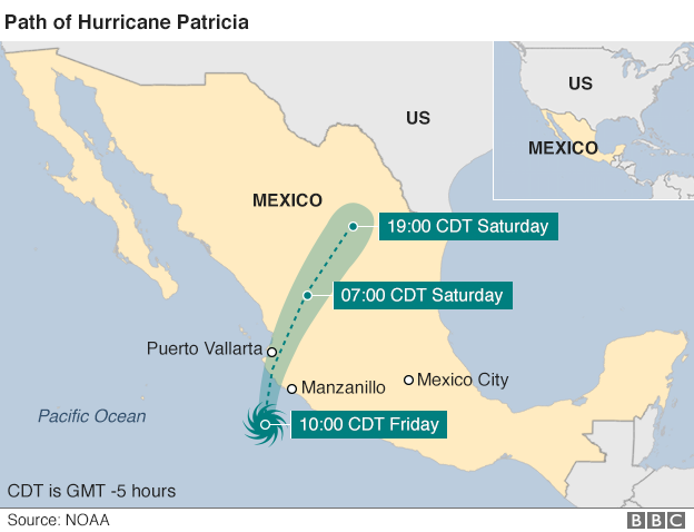 Ο τυφώνας με το όνομα «Πατρίσια» είχε τοποθετηθεί στην κατηγορία 5 (την υψηλότερη στην αντίστοιχη κλίμακα) και η ταχύτητα των ανέμων του ξεπέρασε τα 325 χιλιόμετρα. Περισσότεροι από 400.000 πολίτες κινδύνευαν άμεσα, σύμφωνα με τις μεξικανικές αρχές.