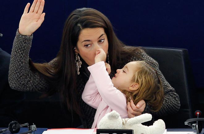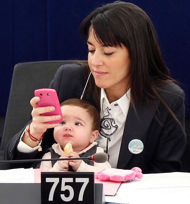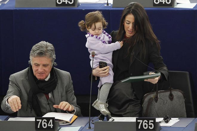 Όπως είχε πει τότε η μητέρα της, ήθελε να στείλει ένα μήνυμα για τη διεκδίκηση περισσοτέρων διευκολύνσεων για τις εργαζόμενες γυναίκες. Τότε, η πιτσιρίκα ήταν εντυπωσιακά συνεργάσιμη, καθώς κοιμόταν γαλήνια στην αγκαλιά της Ιταλίδας πολιτικού, χωρίς κλάματα και φασαρίες.