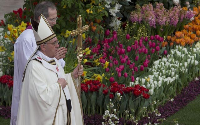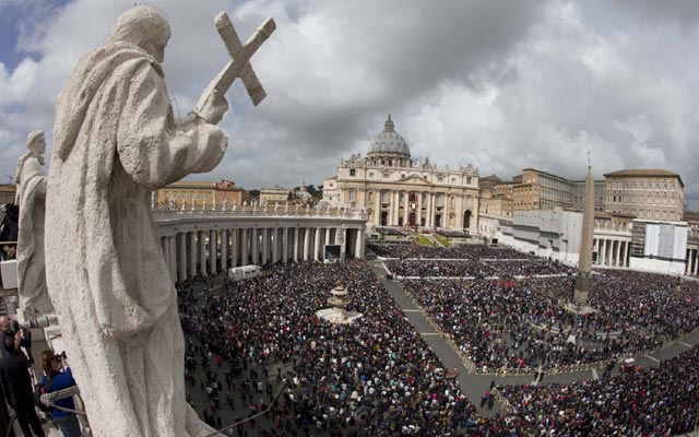 Διακόσιες πενήντα χιλιάδες άτομα κατέκλυσαν σήμερα το πρωί την πλατεία του Αγίου Πέτρου για να ακούσουν το μήνυμα του πάπα Φραγκίσκου για το Πάσχα των καθολικών.