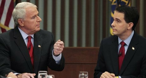 (Δεξιά ο Scott Walker και αριστερά ο Tom Barrett)