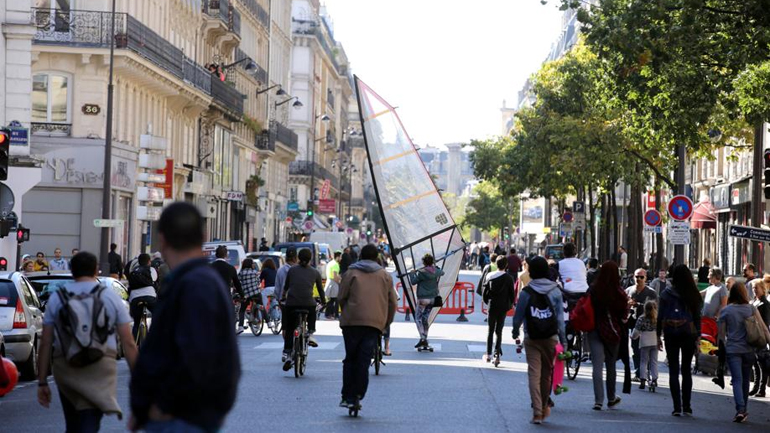 Για λίγες ώρες, χιλιάδες πεζοί και ποδηλάτες κατέλαβαν την Κυριακή τις μεγάλες λεωφόρους και τους δρόμους στο κέντρο του Παρισιού, με την ευκαιρία της πρώτης «ημέρας χωρίς αυτοκίνητο» που οργανώθηκε στη γαλλική πρωτεύουσα.