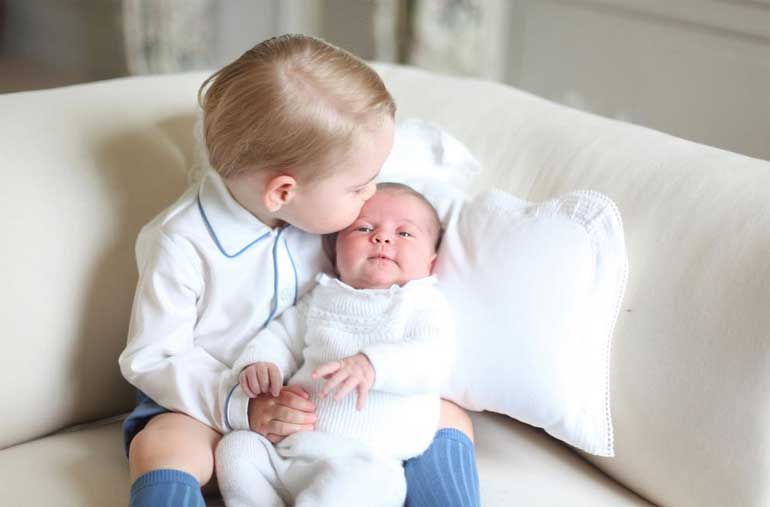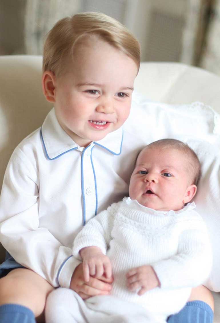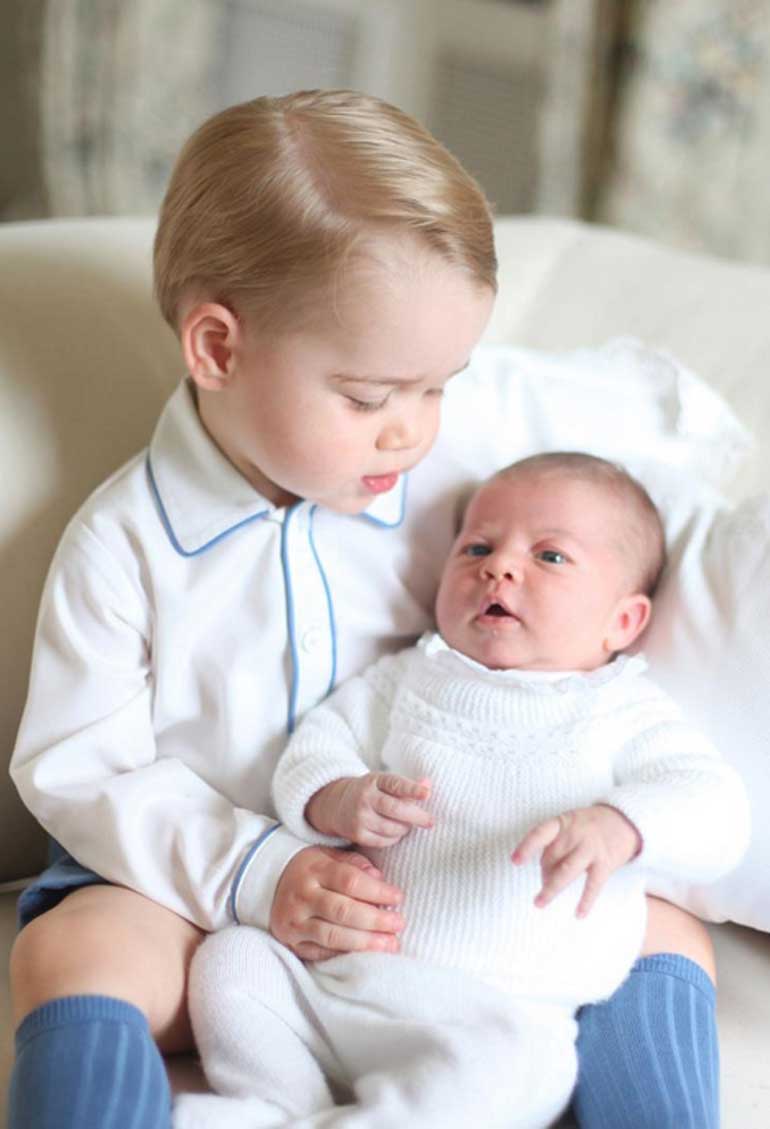 Πρόκειται για τέσσερις φωτογραφίες που τράβηξε, η δούκισσα του Κέμπριτζ, Κέιτ, στα μέσα Μαΐου και στις οποίες ο Τζορτζ κάθεται σε έναν καναπέ και έχει στην αγκαλιά του τη μικρή του αδελφή.
