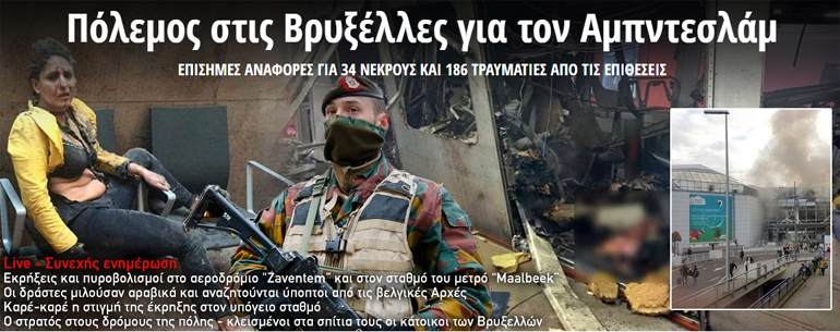 Οι μαχητές του Ισλαμικού Χαλιφάτου πραγματοποίησαν μια σειρά βομβιστικών επιθέσεων, με ζώνες και συσκευές εκρηκτικών, την Τρίτη, στοχεύοντας στο αεροδρόμιο και στον κεντρικό σταθμό του μετρό στο κέντρο της πρωτεύουσας του Βελγίου, τις Βρυξέλλες, μια χώρα που συμμετέχει στον διεθνή συνασπισμό κατά του Ισλαμικού Χαλιφάτου.