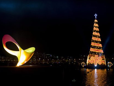 Πλωτό το δέντρο στο Ρίο ντε Τζανέϊρο, με το έμβλημα των Παραολυμπιακών Αγώνων του 2016 που θα διεξαχθούν στη Βραζιλία να πλαισιώνει τον στολισμό…