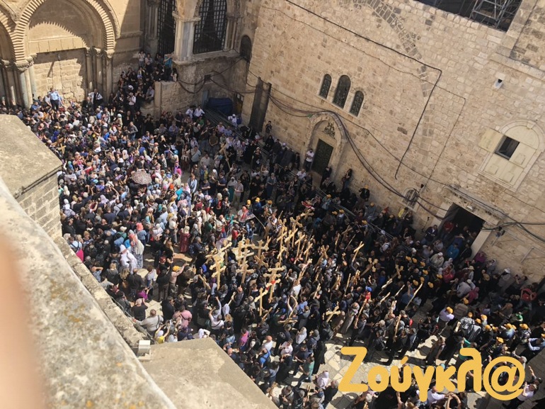 Οι προσκυνητές βρέθηκαν από τα ξημερώματα έξω από το Πραιτώριο για να συμμετάσχουν στην αναπαράσταση της Σταύρωσης του Χριστού, ακολουθώντας τη διαδρομή που έκανε ο Κύριος. Όσοι επιδίωξαν να φτάσουν στο Πραιτώριο λίγο πριν την έναρξη, λόγω της προσέλευσης του κόσμου δεν τα κατάφεραν γιατί η αστυνομία απαγόρευσε την είσοδο για λόγους ασφαλείας. Τα δρομάκια που βρίσκονται στην ευρύτερη περιοχή γύρω από τον Γολγοθά και τις Φυλακές, ήταν ασφυκτικά γεμάτα από κόσμο με αποτέλεσμα να είναι αδύνατη η πρόσβαση.