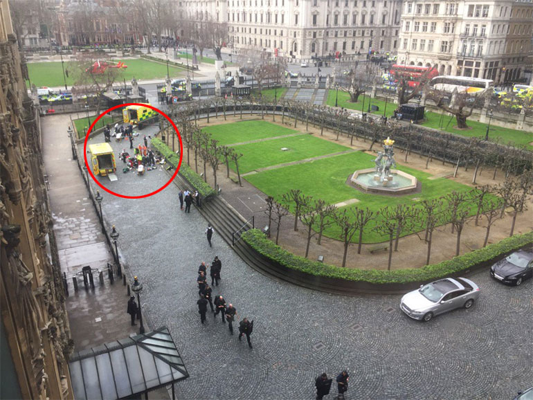 Το βρετανικό κοινοβούλιο έχει αναστείλει τις εργασίες του και οι βουλευτές κλήθηκαν να απομακρυνθούν από το κτίριο, ενώ η αστυνομία του Λονδίνου ανακοίνωσε ότι γνωρίζει για το συμβάν κοντά στο κοινοβούλιο, χωρίς να προβεί σε περισσότερα σχόλια. Η πρωθυπουργός Τερέζα Μέι φυγαδεύτηκε αμέσως, ενώ παράλληλα ενημερώθηκε ο Αμερικανός πρόεδρος Ντόναλντ Τραμπ για το αιματηρό συμβάν.