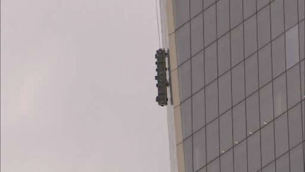 Στο σημείο έσπευσαν σωστικά συνεργεία, τα οποία με τη χρήση ειδικών τροχών έκοψαν τα τζάμια, προκειμένου να απεγκλωβίσουν τους εργαζόμενους από το ύψους 541 μέτρων γυάλινο κτίριο.