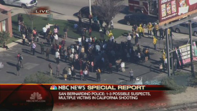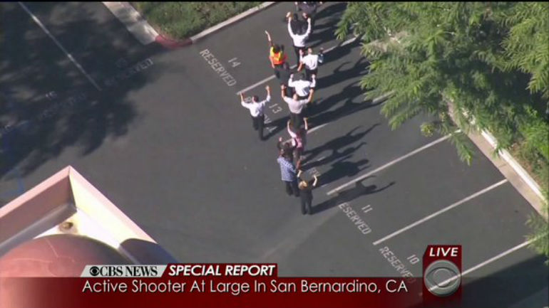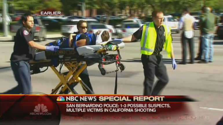 Το πρωί της Πέμπτης πάντως έγινε γνωστό ότι οι δράστες ήταν δύο και έπεσαν νεκροί από τα πυρά της αστυνομίαςΟι πυροβολισμοί σημειώθηκαν στα κτήρια του συμπλέγματος των Χερσαίων Περιφερειακών Υπηρεσιών της πόλης (σ.σ.: Κρατική υπηρεσία πρόνοιας για άτομα με αναπηρίες) που βρίσκεται επί της οδού St. Waterman 1300, τα οποία και εκκενώθηκαν από τις αρχές. Τα αμερικανικά μέσα κάνουν λόγο για τουλάχιστον 14 νεκρούς και 17 τραυματίες, ενώ παράλληλα έγινε λόγος για κατάσταση ομηρίας. Το Reuters επαλήθευσε τον θάνατο τριών ανθρώπων.