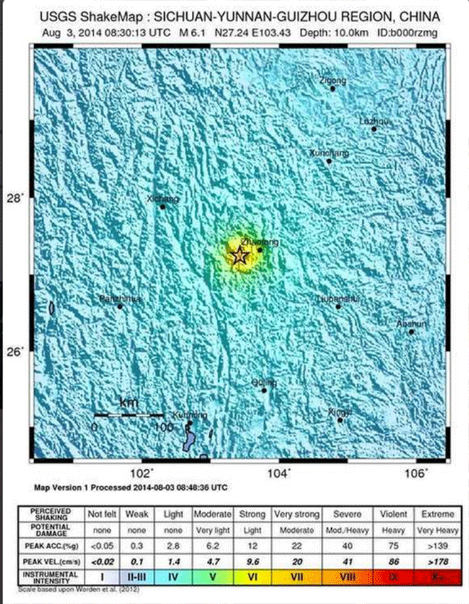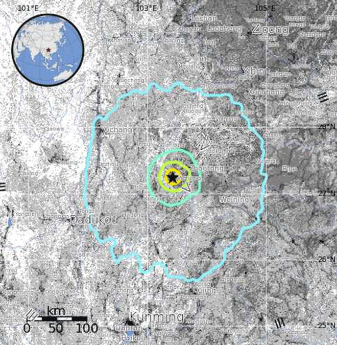 Σύμφωνα με τα τοπικά μέσα ενημέρωσης, η δόνηση έγινε κυρίως αισθητή σε μια απομακρυσμένη περιοχή της επαρχίας Γιουνάν, αλλά και στις γειτονικές επαρχίες Γκουιζού και Σετσουάν.
