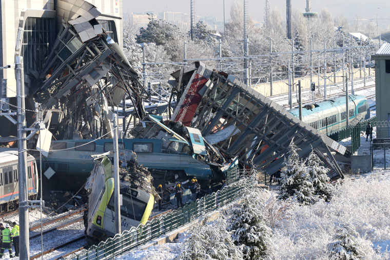 Το σιδηροδρομικό δυστύχημα σημειώθηκε στην περιοχή Γενί Μαχαλέ, στη δυτική πλευρά της πρωτεύουσας. Μια γέφυρα κατέρρευσε πάνω στην αμαξοστοιχία, της οποίας τουλάχιστον δύο βαγόνια εκτροχιάστηκαν.