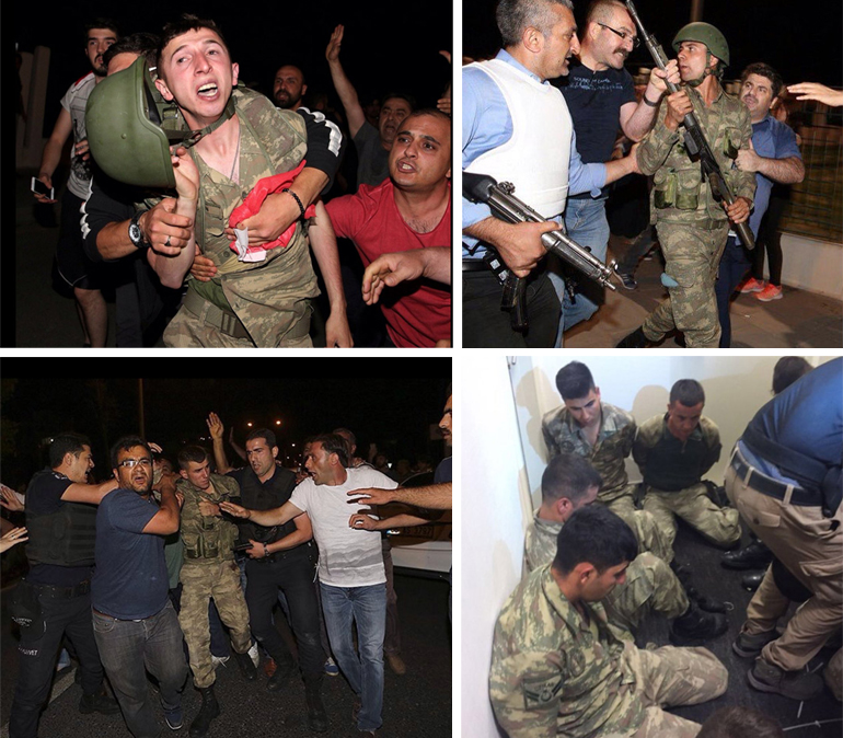 Αντιμέτωποι με προπηλακισμούς από πολίτες που βγήκαν στους δρόμους για να εκφράσουν την υποστήριξή τους στην κυβέρνηση του Ρετζέπ Ταγίπ Ερντογάν, βρέθηκαν πραξικοπηματίες.