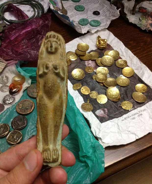 Οι δυνάμεις ασφαλείας οι οποίες ερεύνησαν το σπίτι μιας οικογένειας και βρήκαν 103 ιστορικά αντικείμενα από την βυζαντινή και την οθωμανική περίοδο.