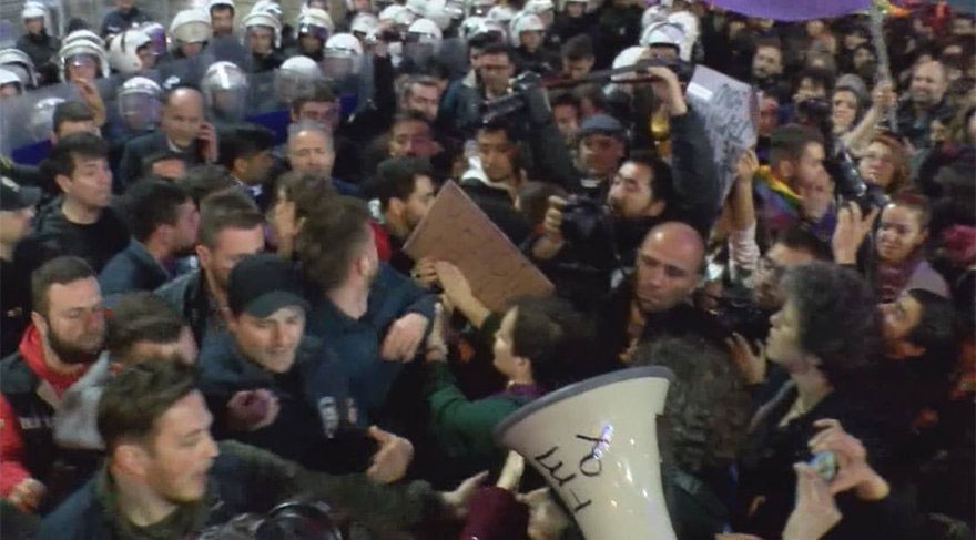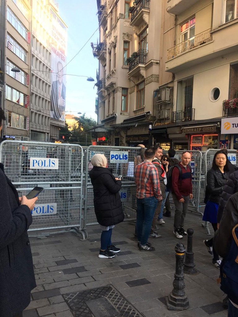 Οι διαδηλωτές συγκεντρώθηκαν περιμετρικά της πλατείας Ταξίμ, σχεδιάζοντας να πραγματοποιήσουν μια πορεία στην περιοχή. Εκατοντάδες αστυνομικοί των μονάδων αντιμετώπισης ταραχών τους εμπόδισαν για να τους αποτρέψουν να προχωρήσουν προς τον πεζόδρομο Ιστικλάλ.