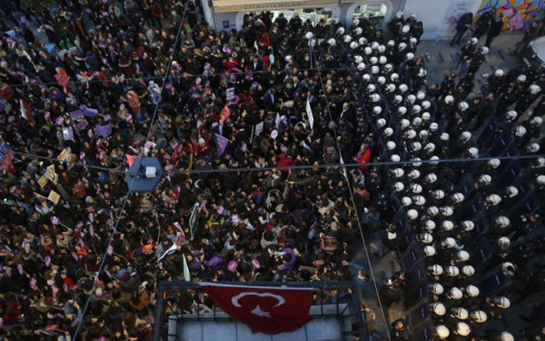 Έπειτα από πολλές προειδοποιήσεις, αστυνομικοί των μονάδων αντιμετώπισης ταραχών απώθησαν με τη βοήθεια δακρυγόνων περίπου 1.000 ανθρώπους, στην πλειονότητά τους γυναίκες, που είχαν συγκεντρωθεί για να διαδηλώσουν στη λεωφόρο Ιστικλάλ.