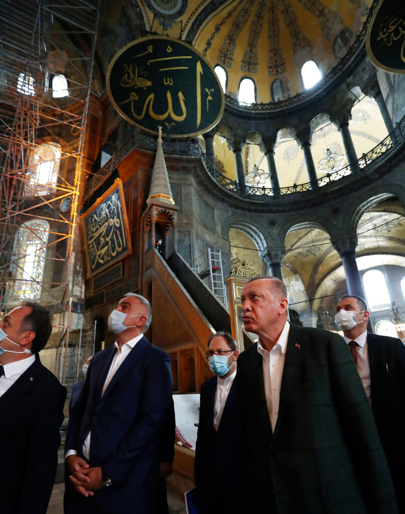 Υπενθυμίζεται ότι ο Ερμπάς επιθεώρησε την περασμένη Κυριακή το ναό μαζί με τον υπουργό Πολιτισμού και Τουρισμού Μεχμέτ Νουρί Ερσόι. Ανακοίνωσαν ότι «στο τζαμί Αγίας Σοφίας, το οποίο θα είναι ανοιχτό για λατρεία πέντε φορές ημερησίως από τις 24 Ιουλίου, δύο ιμάμηδες και τέσσερις μουεζίνηδες θα αρχίσουν να υπηρετούν το έθνος μας και όλους τους πιστούς».