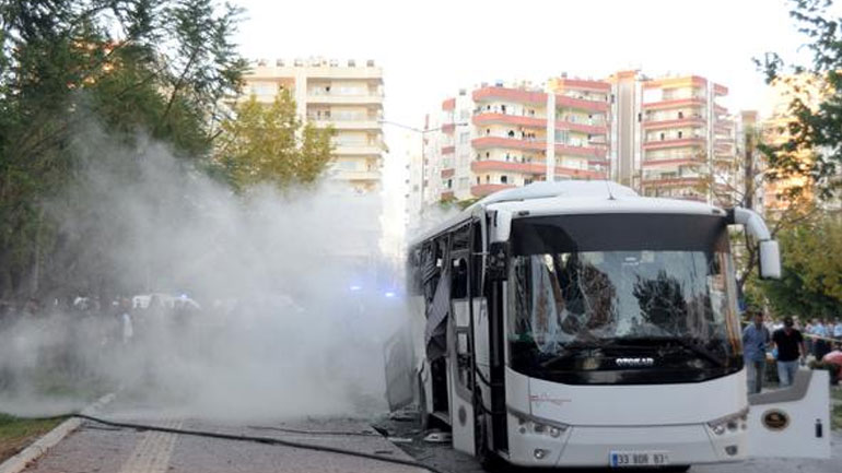 Δώδεκα άνθρωποι τραυματίστηκαν από τη βομβιστική επίθεση που σημειώθηκε σήμερα το απόγευμα εναντίον ενός οχήματος της αστυνομίας στην πόλη της Μερσίνης, στη νότια Τουρκία.