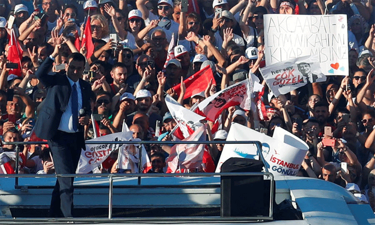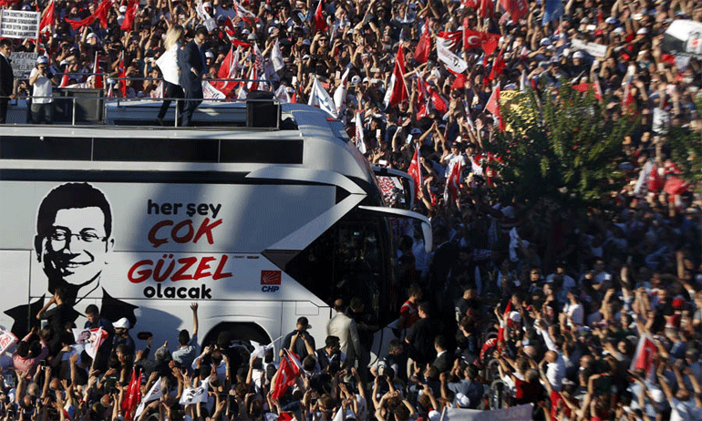 Χιλιάδες κόσμου έχουν συγκεντρωθεί σήμερα το απόγευμα για να υποδεχθούν τον νέο δήμαρχο της Κωνσταντινούπολης Εκρέμ Ιμάμογλου στην ορκωμοσία του.