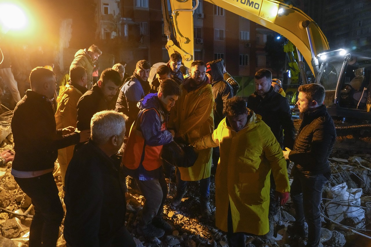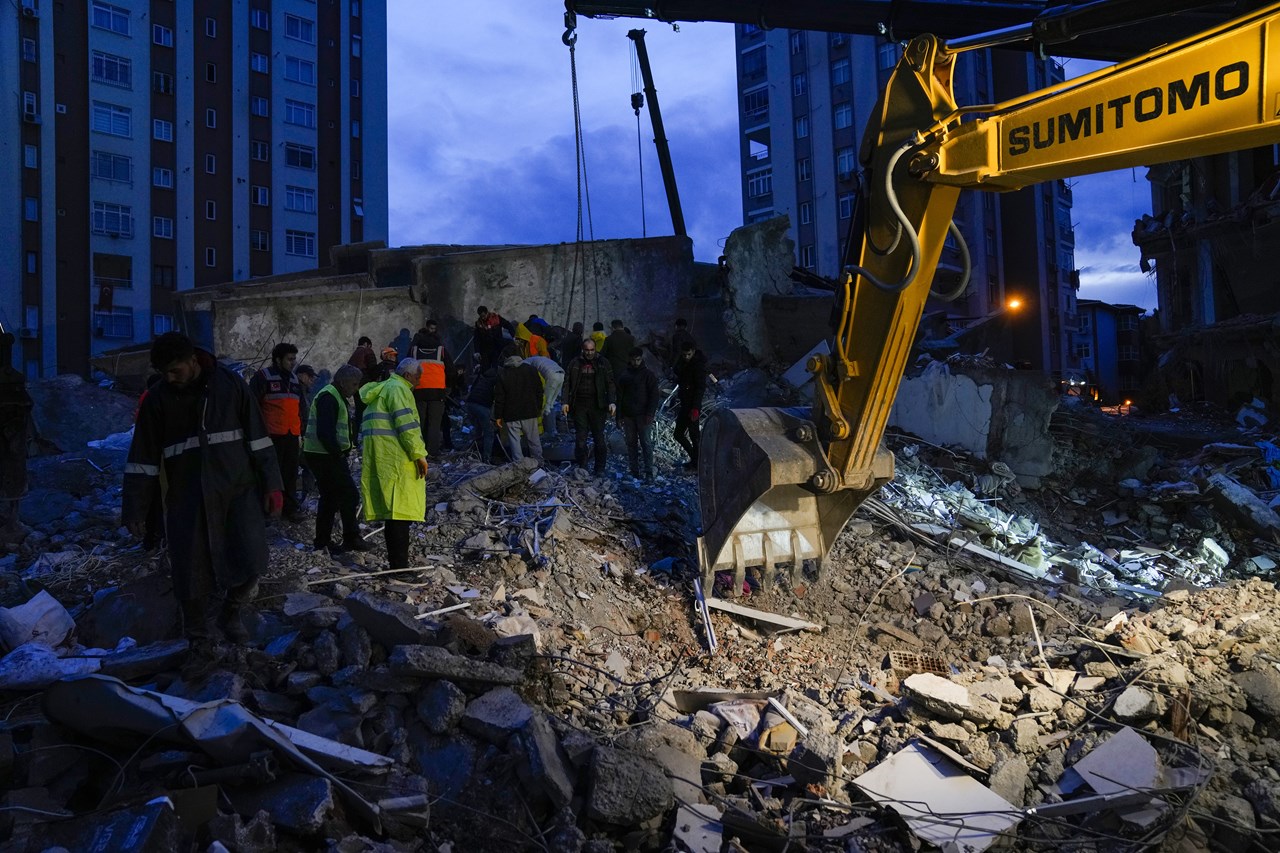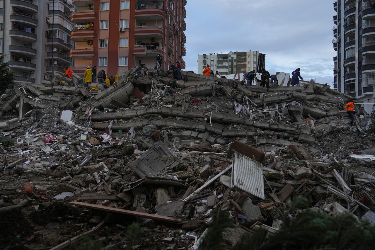Ομάδες διασωστών ψάχνουν για επιζώντες στα συντρίμμια του κρατικού νοσοκομείου του Ισκεντερούν (Αλεξανδρέττα), το οποίο ισοπεδώθηκε εν μέρει από τους σεισμούς που έχουν στοιχίσει τη ζωή σε περισσότερους από 3.000 ανθρώπους στην Τουρκία και τη Συρία.