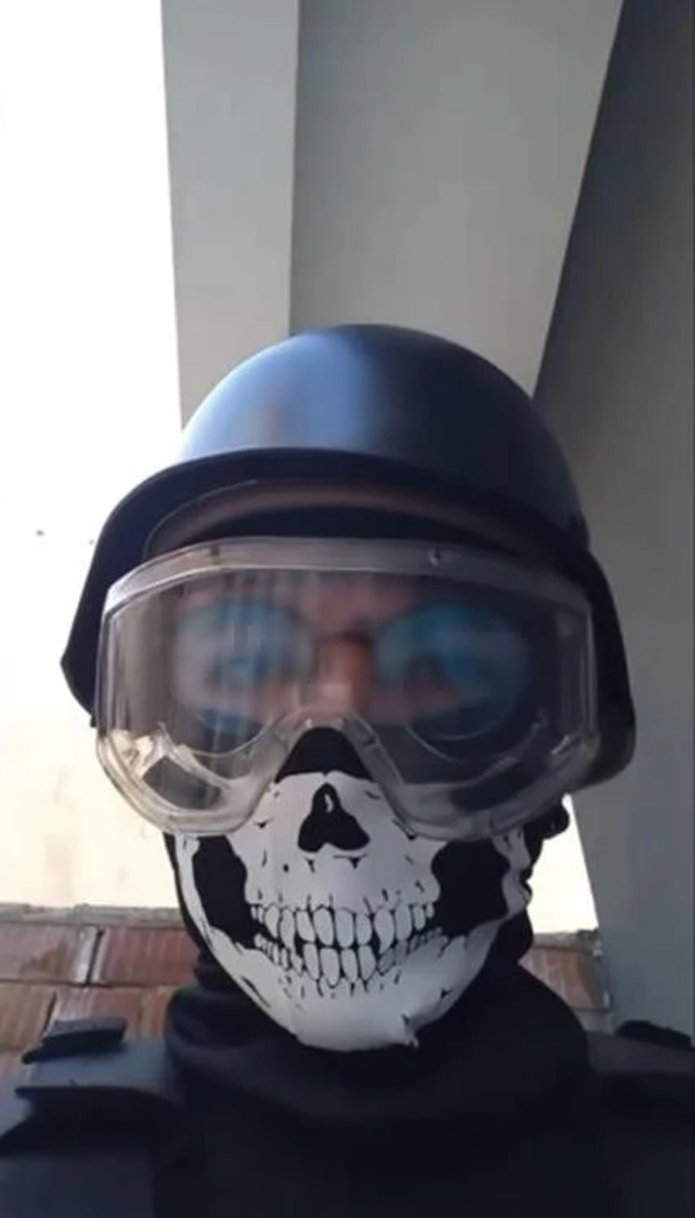 Στιγμιότυπα που τράβηξε ο ίδιος τον εικονίζουν να φοράει γυαλιά προστασίας πάνω από μάσκα με χαρακτηριστικά νεκροκεφαλής στο κάτω μέρος του προσώπου του. Τουρκικοί ιστότοποι ανέφεραν ακόμη πως έφερε στο στήθος «μαύρο ήλιο» — σύμβολο των ναζί αποτελούμενο από τρεις σβάστικες.