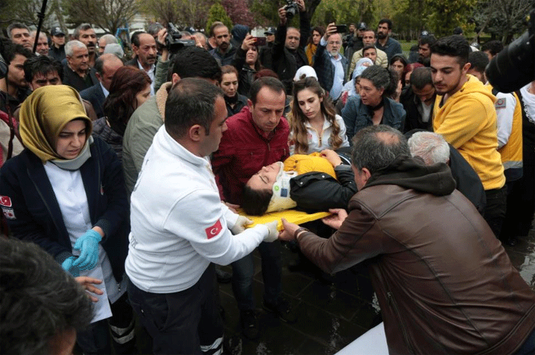 Μια βουλευτής του φιλοκουρδικού Κόμματος της Δημοκρατίας των Λαών (HDP) τραυματίστηκε σήμερα σε μια διαδήλωση στο Ντιγιάρμπακιρ, στη νοτιοανατολική Τουρκία, ενάντια στην απόφαση της Ανώτατης Εκλογικής Επιτροπής (YSK) που στερεί τη θητεία από ορισμένους από τους υποψηφίους που κέρδισαν στις δημοτικές εκλογές της 31ης Μαρτίου.