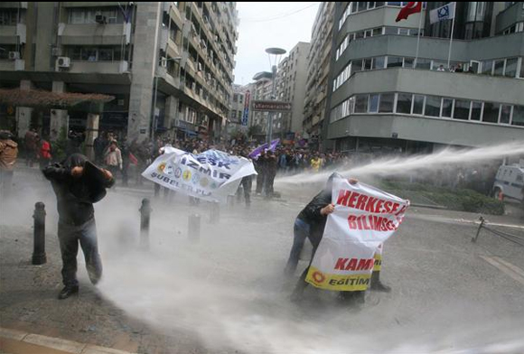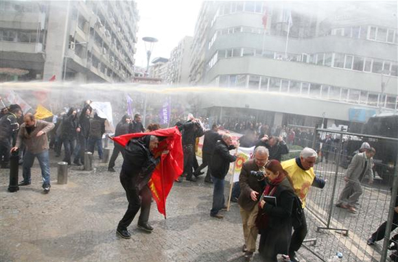 Ισχυρές δυνάμεις της αστυνομίας, που είχαν αναπτυχθεί κοντά στην πλατεία Κιζιλάι της τουρκικής πρωτεύουσας, χρησιμοποίησαν δακρυγόνα και νερό υπό πίεση για να απομακρύνουν τους διαδηλωτές οι οποίοι παρέμεναν συγκεντρωμένοι στο χώρο επί δύο ημέρες.