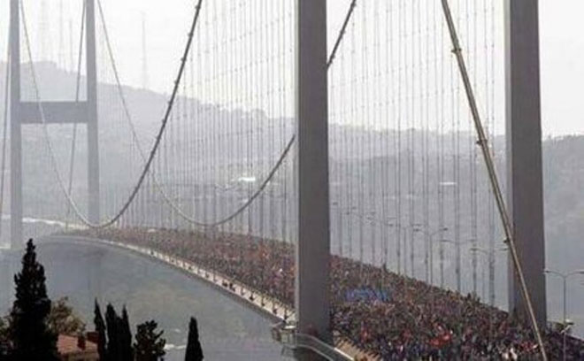 (Πλήθος κόσμου στη γέφυρα του Βοσπόρου)