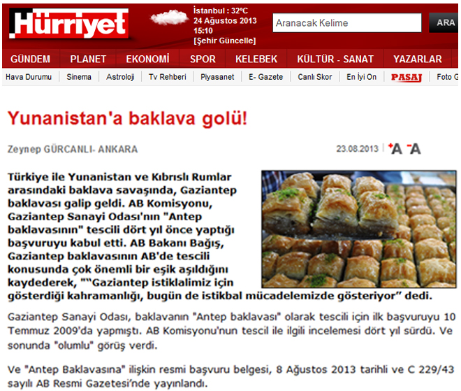 Ο πόλεμος του μπακλαβά καλά κρατεί και η τουρκική πλευρά οργανώνει την αντεπίθεσή της με νέο φάκελο, που αυτήν τη φορά βασίζεται στην, κατά τους ισχυρισμούς της, πατρίδα του περίφημου γλυκού του ταψιού, που είναι η πόλη Γκαζιαντέπ.