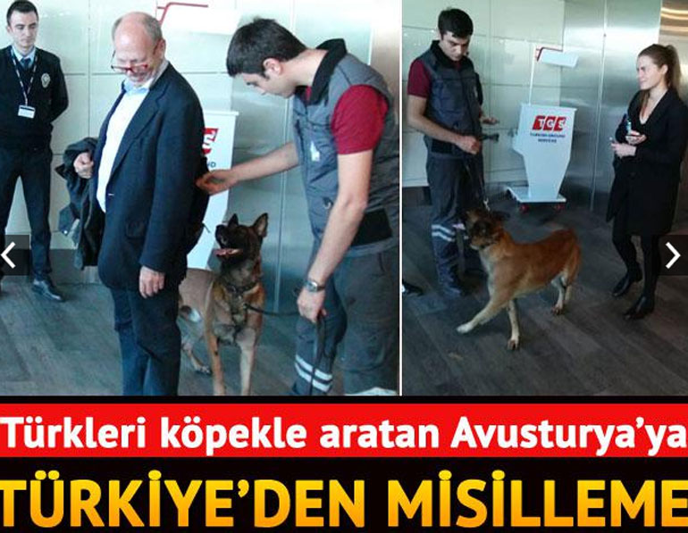 Πριν από 15 ημέρες οι Τούρκοι πολίτες που ανέμεναν στο αεροδρόμιο της Βιέννης για τα επιβιβαστούν σε αεροσκάφος της Türk Hava Yolları για πρώτη φορά ελέχθησαν από ειδικά εκπαιδευμένα σκυλιά πριν προχωρήσουν στην κλίμακα για να ανέβουν στο αεροπλάνο. Φαίνεται πως οι τουρκικές αρχές το πήραν πολύ βαριά και 15 μέρες αργότερα δηλαδή από σήμερα Παρασκευή, ιερή μέρα για το Ισλάμ λόγω της παραδοσιακής προσευχής, ανταπέδωσαν με το ίδιο νόμισμα.
