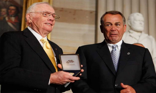 Οι Η.Π.Α. τίμησαν την Τετάρτη τον Neil Armstrong, τον πρώτο άνθρωπο που πάτησε το πόδι του στο φεγγάρι πριν από 42 χρόνια. Μέσα σε ένα φορτισμένο συναισθηματικά κλίμα, ο 81χρονος πρώην αστροναύτης έλαβε το Χρυσό Μετάλλιο του Κογκρέσου, τη μέγιστη τιμητική διάκριση στις Η.Π.Α., από τον Ρεπουμπλικάνο βουλευτή, John Boehner.