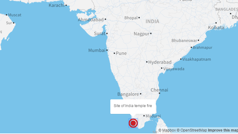 Σύμφωνα με τις πρώτες πληροφορίες, η πυρκαγιά jξέσπασε σε αποθήκη πυροτεχνημάτων και προκάλεσε την κατάρρευση ενός κτηρίου του ναού, με αποτέλεσμα να καταπλακωθούν τουλάχιστον 200 άνθρωποι, πολλοί από τους οποίους παραμένουν εγκλωβισμένοι. Η επίδειξη πυροτεχνημάτων αποτελεί παράδοση στο συγκεκριμένο φεστιβάλ που πραγματοποιείται κάθε χρόνο.